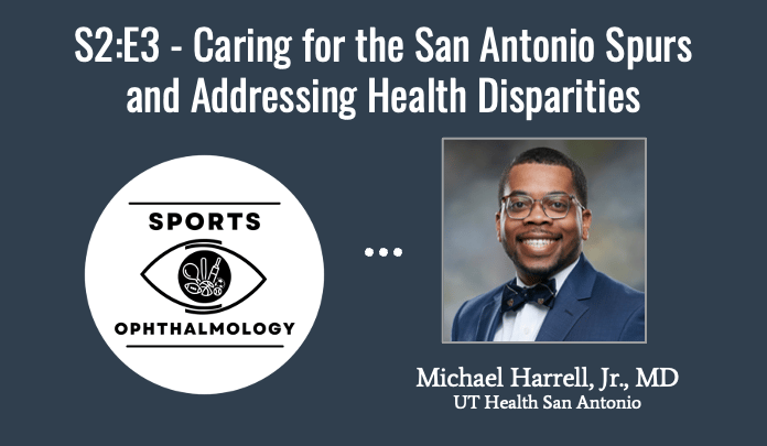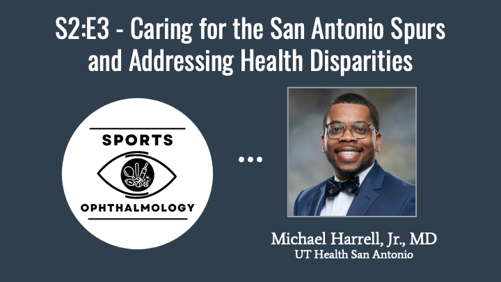 Dr. Harrell shares about his experience taking on the role of head team ophthalmologist for the San Antonio Spurs. Jared and Dr. Harrell discuss game coverage, field equipment, and eye screenings. They discuss the role of eye screenings in addressing community health disparities, and Dr. Harrell shares pearls in navigating race-discordant doctor-patient relationships.
